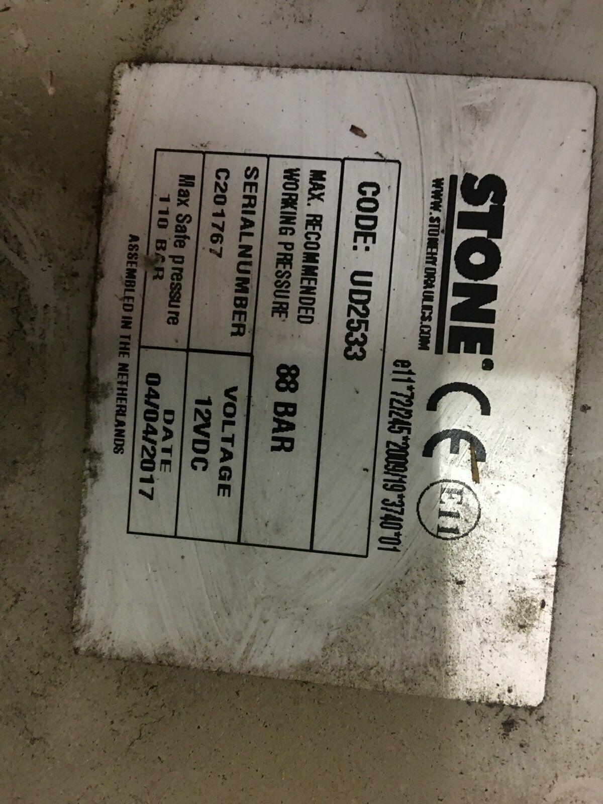 Complete Stone hydraulic power unit for VW Crafter 2FF flatbed truck, supplied as shown in the pictures. This unit is in excellent condition with a mileage of 1,536 km and includes all components for immediate installation.